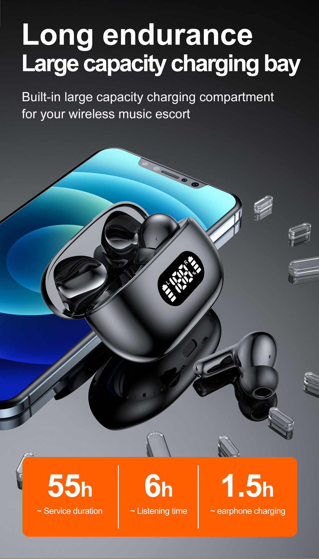 Ai Translation Cross-Border F05 Wireless Bluetooth Headphones Mobile Phone Call Led Digital Display Bass Earbuds Touch Gaming Low Latency